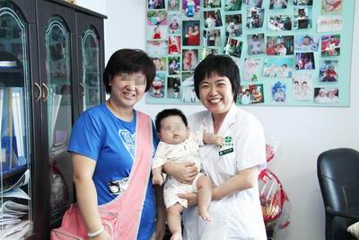 图为刘女士带着儿子来向广州圣丹福医院主任报喜